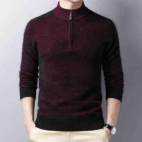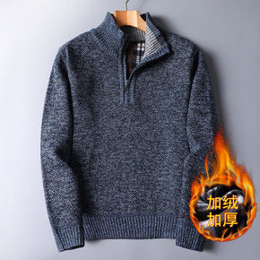 半拉链毛衣男春季新款半高领中老年保暖针织衫爸爸宽松...