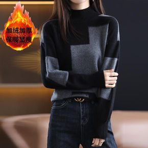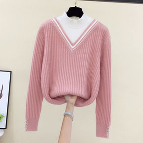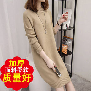 2019秋冬新款韩版毛衣女装半高领中长款套头宽松钉...