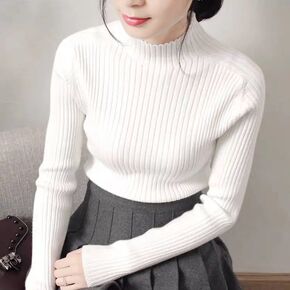 高领针织打底衫女长袖秋冬季新款百搭毛衣女加厚学生修...