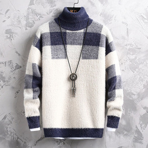 秋冬季水貂绒毛衣男士半高领内搭打底衫潮流加绒加厚款...
