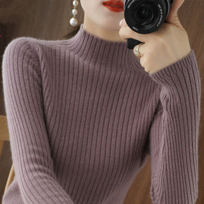半高领毛衣女2021秋冬新款修身百搭打底衫上衣短款...