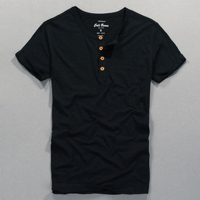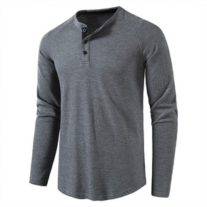 欧美男装内搭长袖t恤 外贸男士打底衫上衣华夫格亨利...