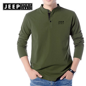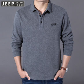 JP秋季男士翻领长袖t恤中青年纯色大码商务休闲纯棉...