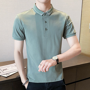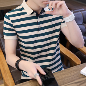 2022夏季时尚男士条纹polo衫男装商务日系修身...