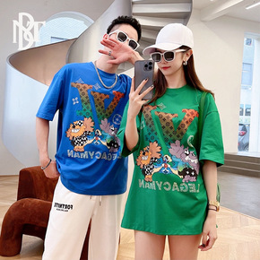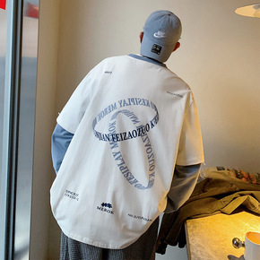 2022短袖t恤男百搭潮流夏季印花半袖潮牌宽松混搭...