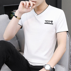 莫代尔冰丝t恤男士短袖夏季纯色体恤衫2021新款白...