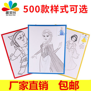 新款儿童水彩画涂色画板地摊绘画人物服装店画框入门宝...