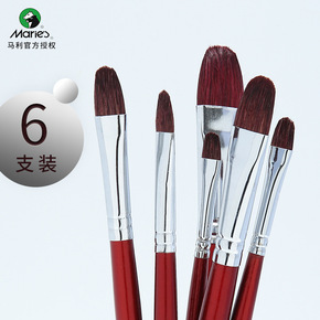 六支羊毛油画笔 尼龙毛画笔笔刷 水粉笔套装文具批...