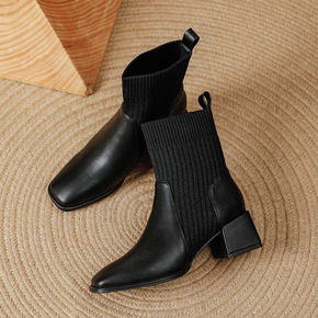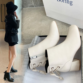 5607-6(此款售完不补货)高跟百搭显瘦短靴粗跟...