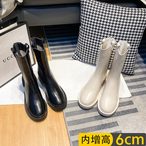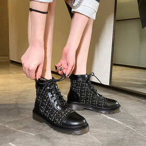 2020新款小香风马丁靴女中跟粗跟拼接韩版百搭英伦...