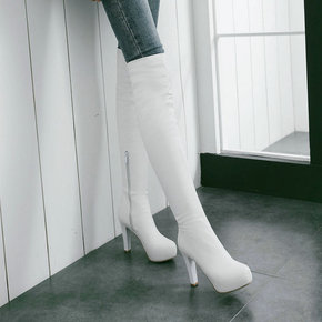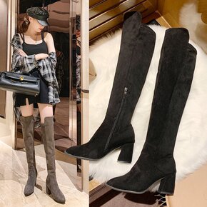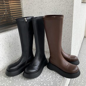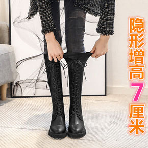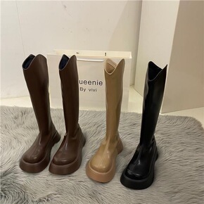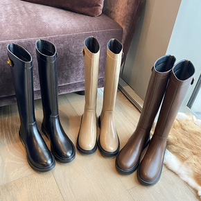不过膝靴女2022秋冬新款后拉链长筒靴厚底瘦瘦高筒...