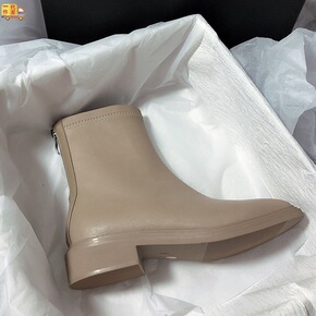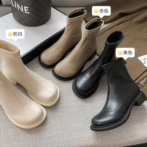马丁靴2021新款方头粗跟英伦短靴秋冬单靴拉链百搭...
