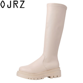 OJRZ白色高筒靴女2021新款秋冬加绒弹力瘦瘦马...
