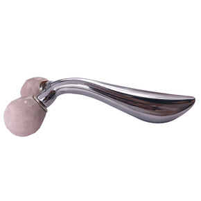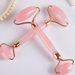 爆款粉晶滚轮天然玉石按摩仪眼部美容器面部脸部推脸双...
