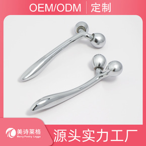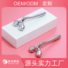 跨境货源金属滚轮按摩棒脸部不锈钢护肤保养工具手持美...