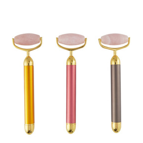 爆款粉晶滚轮天然玉石按摩仪眼部美容器面部脸部推脸双...