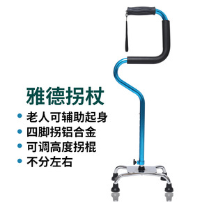 雅德拐杖 老人可辅助起身四脚拐铝合金可调高度拐棍不...