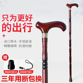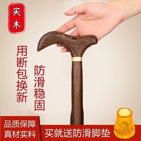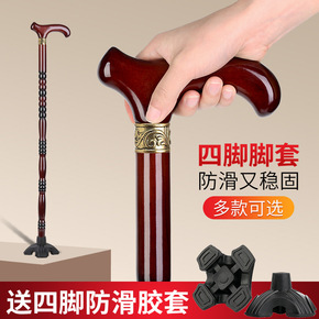 红木老人拐杖防滑老年人杖拐木头四脚拐扙鸡翅木手杖实...