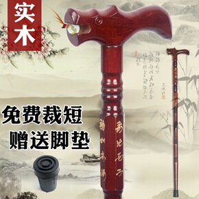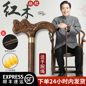 老人拐杖红木鸡翅木质防滑手杖实木龙头拐棍木头老年人...