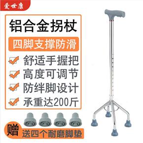 四脚拐杖 不锈钢四角拐杖 可调 助行器 高低可...