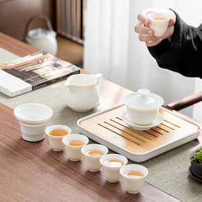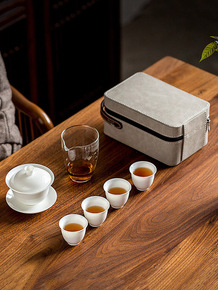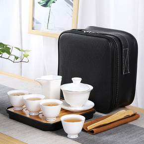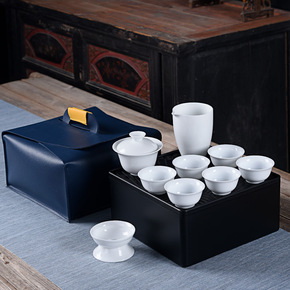 静雅茶艺旅行茶具套装便携包 德化白瓷功夫茶杯茶艺师...