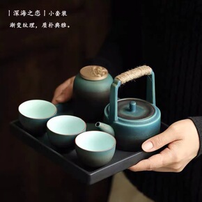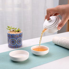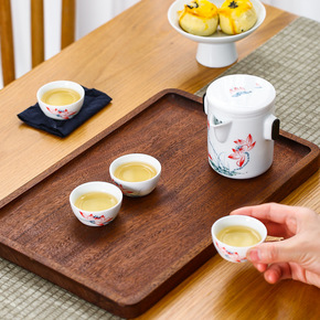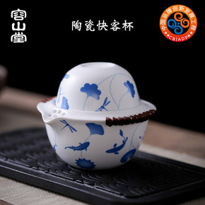 便捷式旅行茶具户外车载陶瓷快客杯野外一壶四杯纯色简...