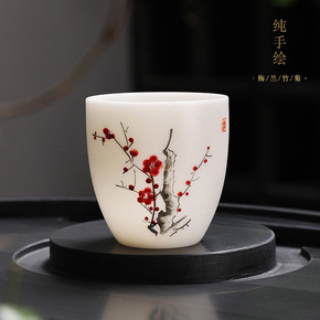 高端白瓷茶具纯手工手绘功夫茶杯品茗杯羊脂玉陶瓷主人...
