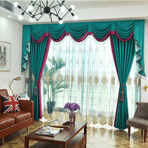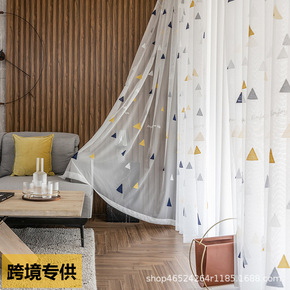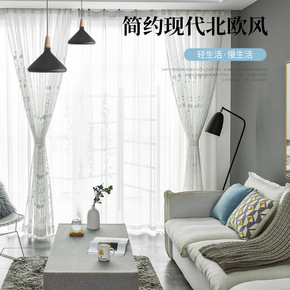 跨境专供田园现代简约风客厅卧室落地窗帘窗纱成品绣花...