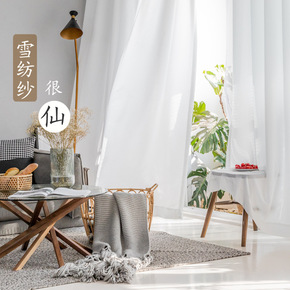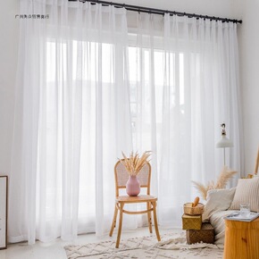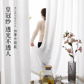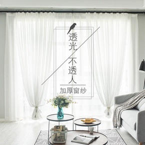 天丝绒雪纺窗帘窗纱透光不透人成品白纱阳台纱隔断免打...