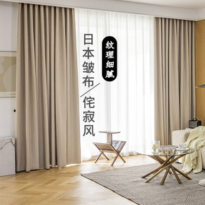 奶茶色奶油窗帘布 日式皱布现代简约卧室客厅窗纱法式...