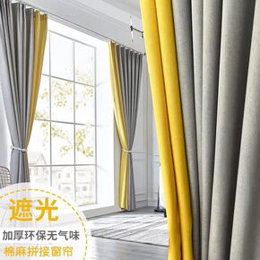 厂家直销全遮光拼色棉麻窗帘隔热加厚酒店卧室客厅成品...