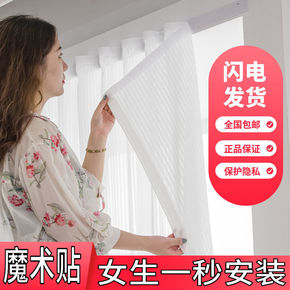 竖百叶魔术贴窗帘纱透光不透人飘窗卧室客厅白纱雪纺纱...