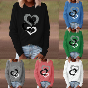 2021wish亚马逊欧美跨境新款时尚心印花长袖卫...