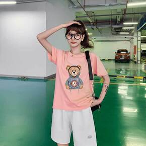 2022夏季新款女装可爱T恤女韩版学生小熊款宽松上...