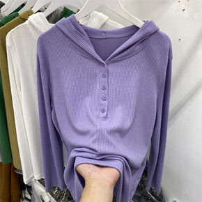 ins热销欧美女士秋冬款卫衣侧开叉设计感棉长袖上衣...