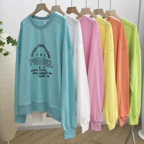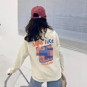 批发韩国2021新款NY字母方块涂鸦宽松休闲圆领卫...
