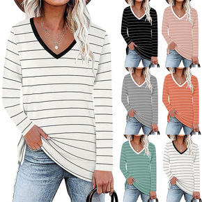 2021秋冬新款连帽外套亚马逊独立站热卖女装条纹开...