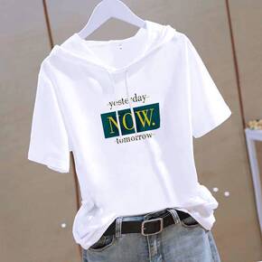 短袖卫衣女连帽薄款夏季洋气印花体恤衫宽松T恤显瘦上...