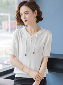 带帽短袖t恤女夏季简约时尚女士薄上衣连帽减龄冰丝针...
