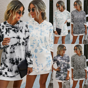 亚马逊 新品2020年秋季时尚印花连帽卫衣女连衣裙...