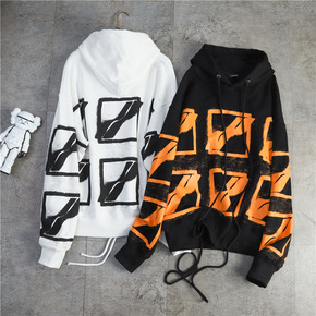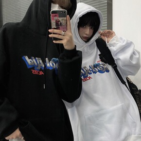 2021冬季韩国INS原宿字母印花宽松连帽加绒卫衣...
