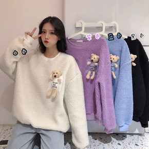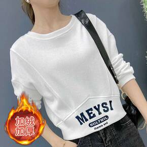 圆领卫衣女春秋冬加绒厚款潮宽松慵懒风不带帽高腰新款...