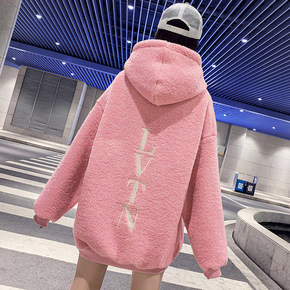 2021春秋冬新款加绒卫衣连帽女保暖大码口袋学生字...
