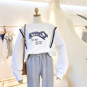 INS超火卫衣女春秋薄款无帽圆领长袖假两件韩版潮学...