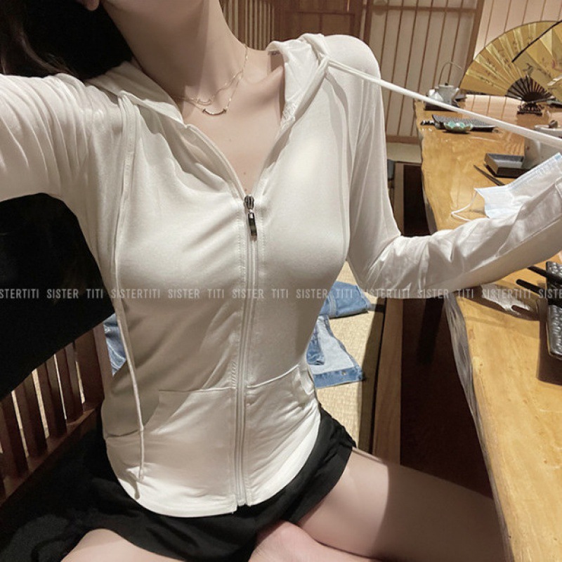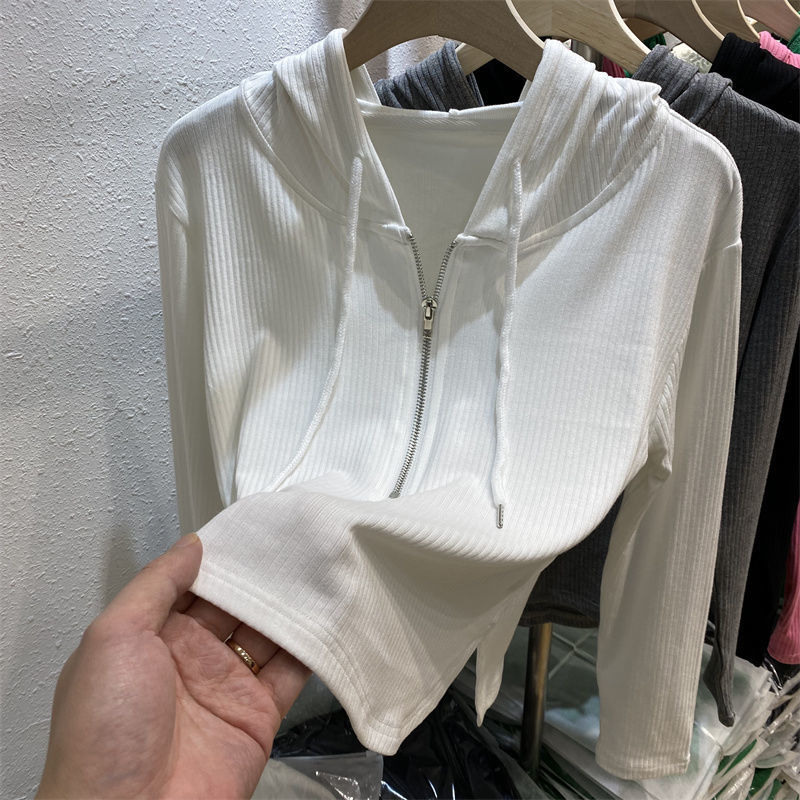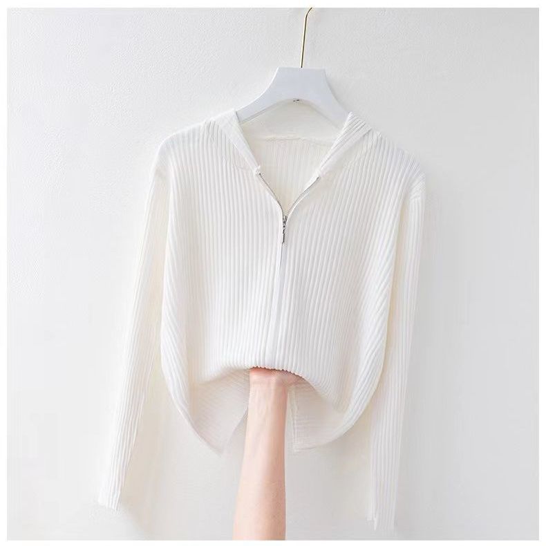 2022春季季新款针织冰丝开衫女薄款外套韩版连帽卫...