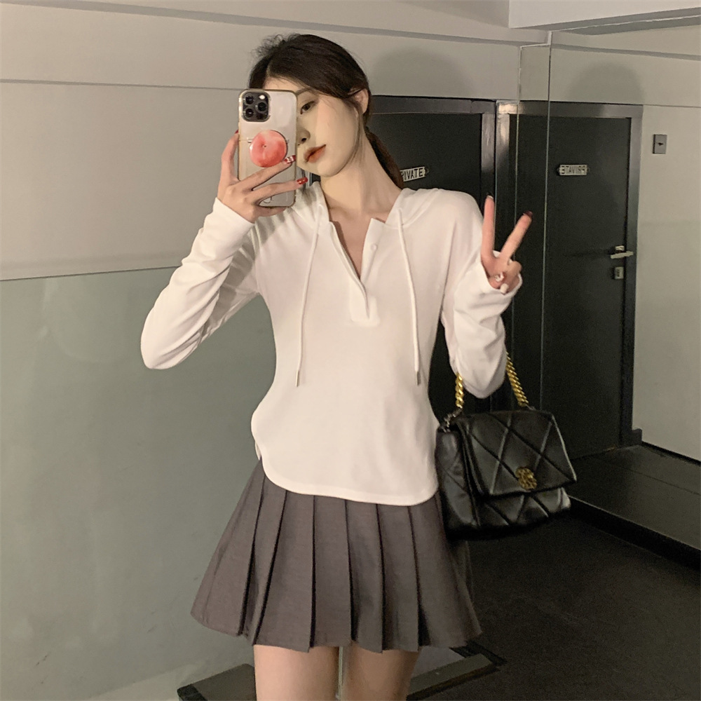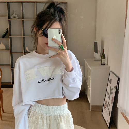 早秋薄款设计感小众长袖t恤上衣宽松bf慵懒风短款卫...
