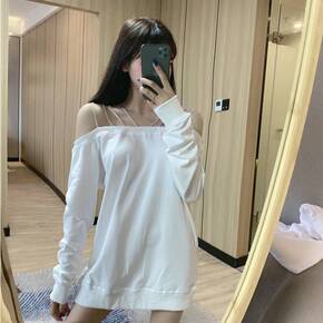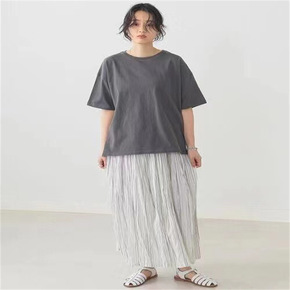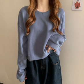 日单2022年夏季新款柔软亲肤纯色中长款卫衣半袖外...