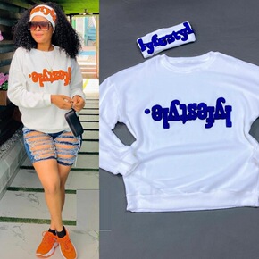 跨境春秋时尚绣花卫衣街头潮人长袖圆领宽松型棉白色套...