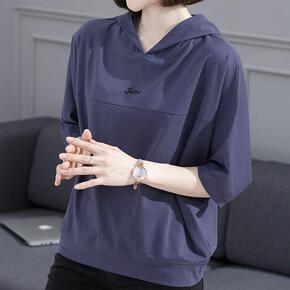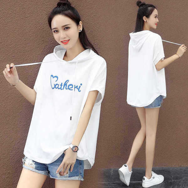 跨境连帽卫衣t恤女短袖宽松2021夏季胖mm大码遮...