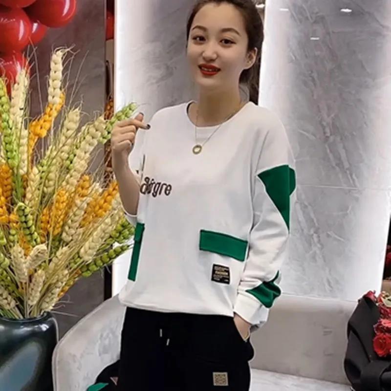 2021年秋冬季加绒加厚卫衣女印花拼接圆领套头长袖...
